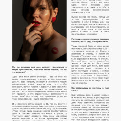 Обновленный формат, но вас все также ждут интервью с интересными персонами и полезные статьи! Хочу сказать каждой девчонке, что ТЫ уникальна! Ты достойна блистать на страницах журналов, на радио и ТВ. Люби себя, мечтай, не упускай возможностей раскрыть свой потенциал, а наш проект в этом поможет!