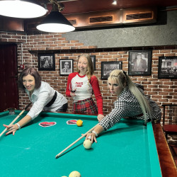 Бильярд — одна из самых популярных настольных игр практически во всём мире. Наверняка и среди Вас есть множество ценителей бильярда. Ну а девушки смотрелись за бильярдным столом очень даже сексуально . Каждая участница подобрала образы под своё настроение и видение . Классно смотрелись вечерние чёрные платья , так элегантно и стильно . У кого то был образ кэжуал , спортивный.