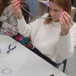 В этот раз мы создавали Колье из гематита с цепями. Все украшения получились изумительно прекрасными с нотаками тепла и новогоднего чуда!