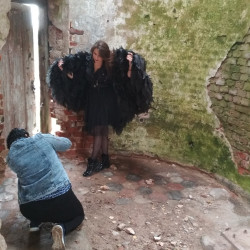 Съёмка проходила в посёлке Высокое, что недалеко от Орши, в старой, полуразрушенной церкви. Место очень атмосферное, давно полюбившееся многим фотографам и туристам. Местные жители с интересом наблюдали за съёмкой. У всех участниц получились очень интересные образы, а в сочетании с черными крыльями общая картинка смотрелась очень эффектно и завораживающее.