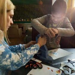 Мы научилась сами делать брелки из кожи и расписывать их акриловыми красками. Это было очень увлекательно! Мероприятие проходило в теплой атмосфере замечательного кафе-баре Академик.