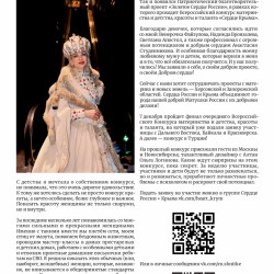 В этом выпуске вы узнаете про женщин, которые также нашли своё место, свою гармонию и точку опоры. Марина Шнитке создала благотворительный проект, который объединяет женщин Крыма и помогает им чувствовать себя королевами. Анна Кузьменко открыла свою студию цветов. Юлия Баранова работает экскурсоводом на инкерманском заводе марочных вин. Ольга Ефремова - мастер переговоров с международным опытом. Татьяна Макашина - бизнес-тренер и профессиональный Коуч. Наталия Тимченко - косметолог, владелица салона красоты. Ольга Крыж - стилист и фотограф. Виктория Ганске -  косметолог-эстетист-инъекционист.Эти женщины смогли превратить то, что им интересно, в дело своей жизни, которое приносит и доход, и удовольствие.Сможешь и ты!Мечтай, добивайся и будь счастлива!